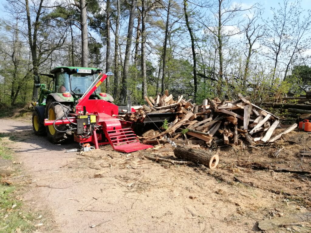 Mit unserem Holzspalter der Marke Growi (GSW253P), können wir effizient und ergonomisch für Sie großen Mengen Polterholz in kurzer Zeit zu fertigen Meterscheiten spalten. Sie haben Holz an der Waldstraße gekauft und möchten dieses aufarbeiten lassen? Kein Problem! Kontaktieren Sie uns gerne. Natürlich können wir auch Ihr privates Waldstück durchforsten und das Holz anschließend rücken und zu fertigen Meterscheiten für sie verarbeiten.